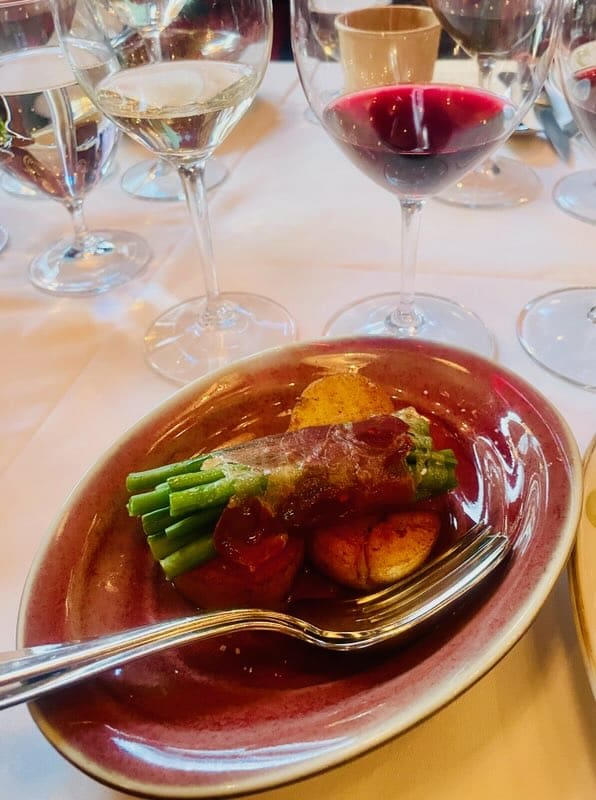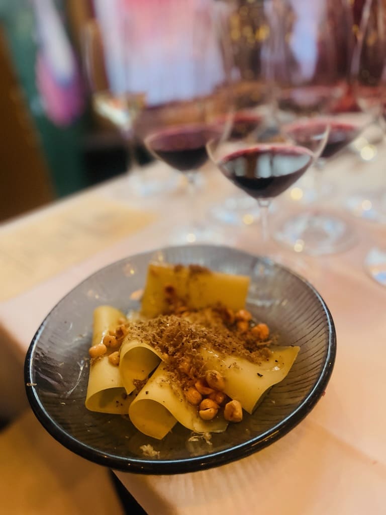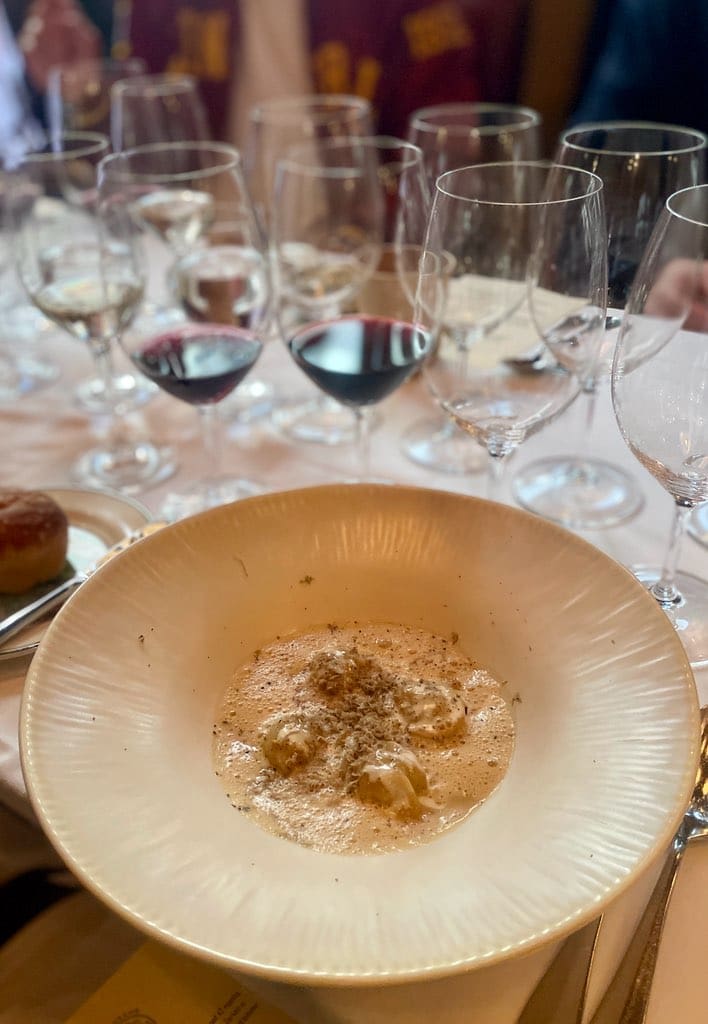 För att komplettera de första tre vinerna, Quimerino Blanco 2024, Quimerino Tinto 2024 och Cabernet Franc Mendoza 2022, serverades en underbar ravioli. Denna pasta var fylld med mör kalvkött, smakrik ibericoskinka, generöst med parmesan och delikat confiterad svamp, allt serverat i en rik kycklingbuljong som förfinats med den exklusiva gotlandstryffeln. En fulländad symfoni av smaker!