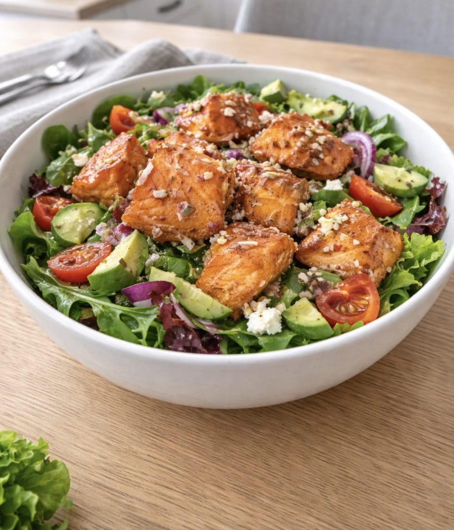 Men dess potential sträcker sig långt bortom det traditionella. På en ordinarie meny ser vi laxen som en utmärkt komponent i mer komplexa rätter. En fräsch sallad, riklig på krispiga grönsaker som romansallat, ruccola, gurka och tomater, kompletterad med avokado och kanske några rostade pinjenötter, skulle bli en fantastisk bas. Toppa salladen med generösa bitar av den varmrökta laxen – den rosepeppar- och rödlökssmaksatta varianten skulle addera en underbar komplexitet med sin peppriga hetta och söta syrlighet. En lätt vinaigrette baserad på olivolja, balsamvinäger och en touch av honung skulle gifta sig perfekt med smakerna.