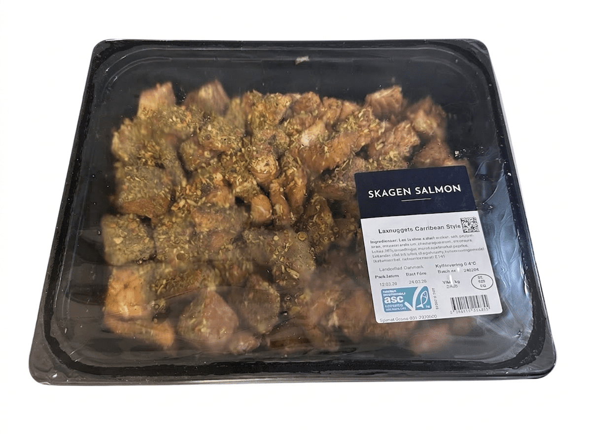 Laxnuggets är perfekta för att addera en touch av lyx och komplexitet till en mängd olika rätter. De är enastående som en stjärningrediens i fräscha, krispiga sallader, men de briljerar även som en elegant förrätt, en raffinerad del av en buffé, eller som en smakfull komponent i en lättare lunchrätt. För att underlätta din verksamhet kommer laxen i praktiska 2,5 kg lådor. Denna förpackningsstorlek är noggrant utvald för att vara lätt att hantera i ett professionellt kök, minimera spill och optimera lagring. Varje låda garanterar hög kvalitet och enkel åtkomst till en produkt som är redo att användas anser vi.