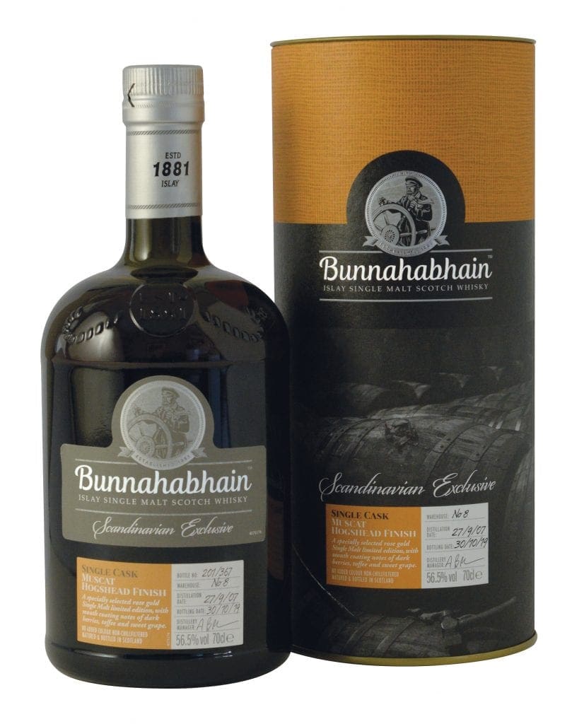 Whiskyn Bunnahabhain Muscat Hogshead Single Cask har slutlagrats i Bunnahabhain bukten med slutfinish i 36 månader på ett utsökt franskt Muscat Hogshead fat.  Därefter har den tappats på flaska för att sedan släppas endast på den skandinaviska marknaden. I Sverige finns endast 170 flaskor av den här rariteten som är en cask strength.