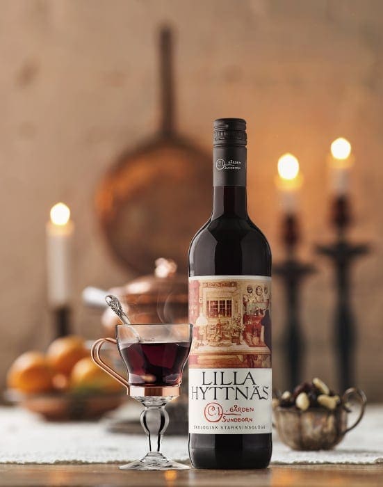 Vi har satt en personlig prägel på glöggen genom att tillsätta apelsin från Ghana och ingefära från Sri Lanka i kryddblandningen vilket ger den en fräsch och balanserad citruskaraktär. Vinbasen, Sangiovese från Marche i Italien, bidrar med en härligt stram körsbärsfrukt. För att sprita upp, få upp alkoholen, på Lilla Hyttnäs har vi använt en prisbelönt dulce cream från Bodegas Robles och tysk vetesprit. Socker från Brasilien, akaciahonung från Ungern och russin från Turkiet ger Lilla Hyttnäs en balanserad sötma. Kardemumma från Sri Lanka och kryddnejlika från Madagaskar ger den förföriska julkryddningen. Givetvis är allt ekologiskt och glöggen är certifierad.