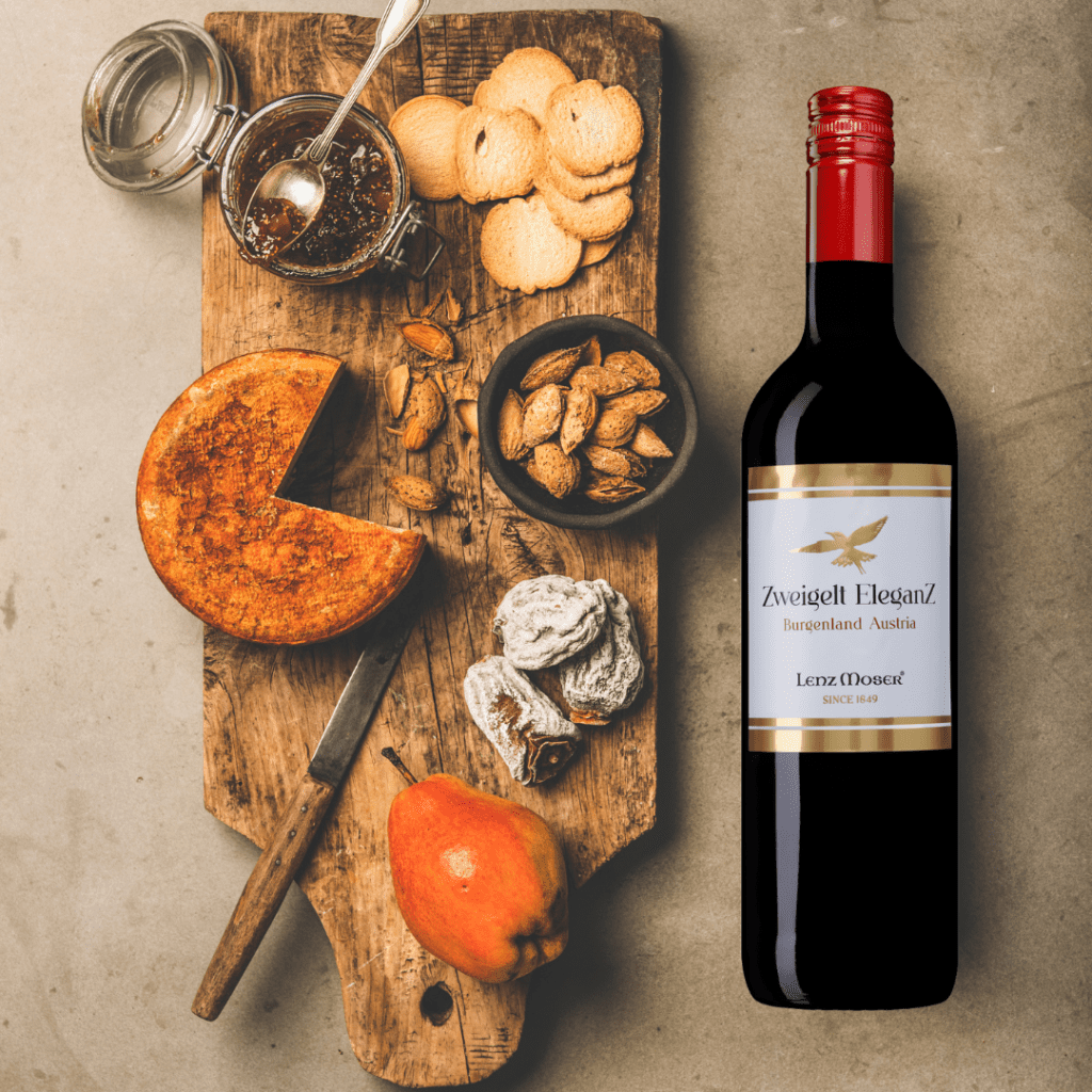 Burgenland, en av Österrikes mest framstående vinregioner, presenterar Lenz Moser Zweigelt Eleganz – ett vin som hyllar och framhäver druvan zweigelt, en av Österrikes mest älskade druvsorter.
