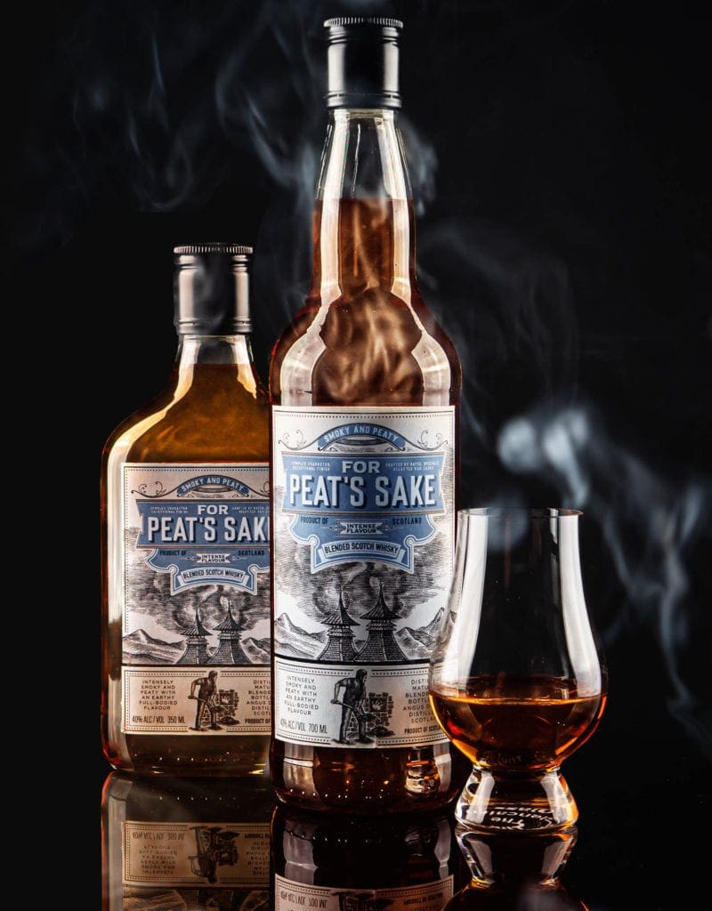 For Peat´s Sake är en helt ny skotsk blended whisky från Angus Dundee Distillers med distinkt rökighet. Whiskyn släpptes i en stor par-lansering den 2 september i storlekarna 350 ml och 700 ml och har nu visat sig bli en succé.