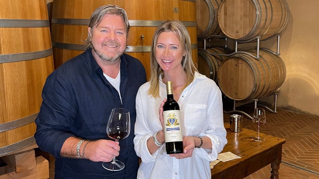 ”Efter mina mästerkockstitlar bestämde jag mig för att bredda mig till att även bli sommelier och läste en intensivutbildning på Wine Hub. Under tiden så låg det självklart i bakhuvudet att försöka ta fram ett eget vin i framtiden. När min käre vän och granne Tomas Brolin (fotbollslegendar, Italienkännare och livsnjutare) hörde av sig om att potentiellt göra ett italienskt vin tillsammans med en italiensk topproducent vid namn Cecchi så kunde jag bara inte tacka nej. Vi har provat otaliga olika blends tillsammans, i olika prisnivåer, från olika årgångar och kommit fram till att den allra bästa för priset var just denna. Vårt besök hos Cecchi var också fantastiskt. Det var en stor upplevelse att få träffa familjen Cecchi, besöka deras vackra vingårdar och avnjuta vinet och den blend vi har valt ut tillsammans med härlig italiensk mat samtidigt som man tittar ut över Toscanas vackra landskap. Vi blev nästan förvånande hur mycket vin man kan få för 119 kronor.