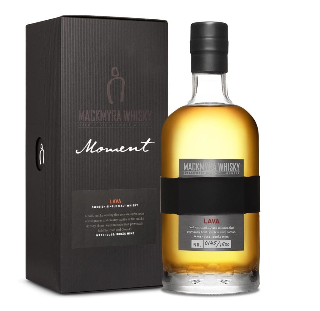 Moment Lava är Mackmyras nya utgåva i Momentserien, som bjuder på en tydlig rökton. Whiskyn är destillerad på Mackmyra Bruk och har mognat i Bodås gruva mellan 9 till 11 år på fat, som tidigare lagrat bourbon och oloroso. Whiskyn har en lätt men tydlig rökighet och man kan förnimma de enriskvistar som använts tillsammans med torven där malten torkas, en tradition som Mackmyra använt i sina rökiga recept sedan starten 1999. Moment Lava passar utmärkt som en avec till julbordet med sin exklusiva rökiga karaktär med varma toner av rostad ek, druvor och krämig vanilj.