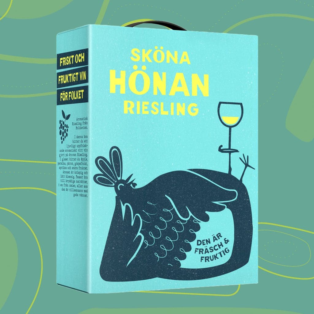 Lagom till våren är Sköna Hönan alldeles nykläckt och visar upp sig för Sveriges vinkonsumenter. Vinet är gjort på den populära rieslingdruvan och presenteras i den klimatsmarta förpackningen bag-in box. Frågan är vad som kom först; Sköna Hönan eller vinet?