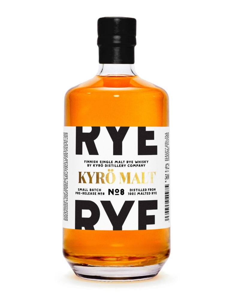 Kyrö Destilleris whisky #8 är tillverkad av 100 procent fullkornsråg från Finland och har lagrats på bourbonfat och nya amerikanska ekfat. Det som gör Kyrös rye whisky unik är användningen av endast fullkornsmalt råg och att whiskyn pumpats över till destilleringspannorna utan filtrering för att bibehålla stor smak och doftupplevelse.