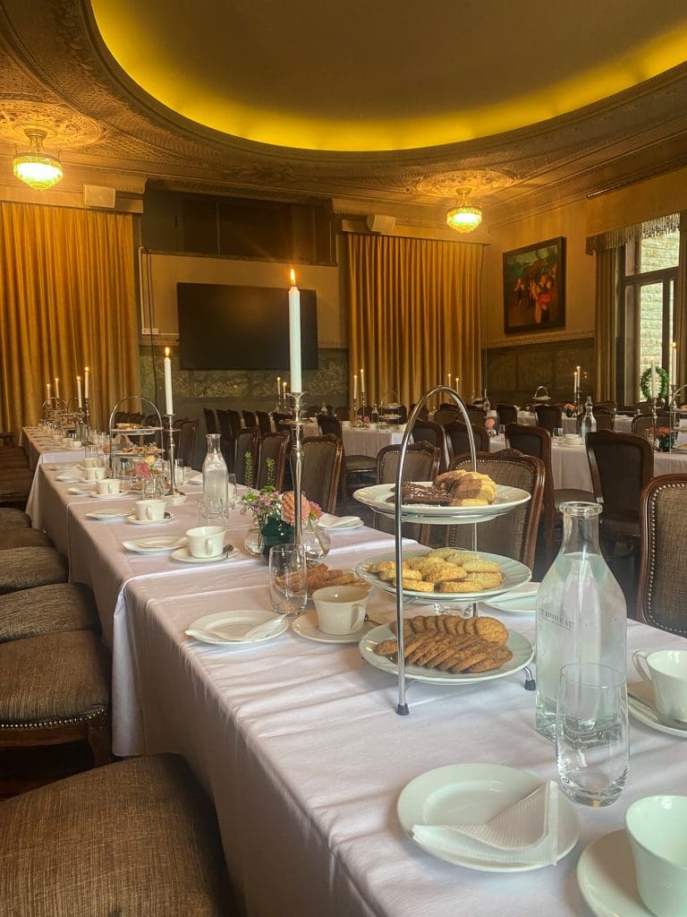 Efter fikat tittade gästerna runt i slottets alla salonger, matsal och flertalet hotellrum som alla har ett spännande kapitel från sagan om Bjertorp Slott.