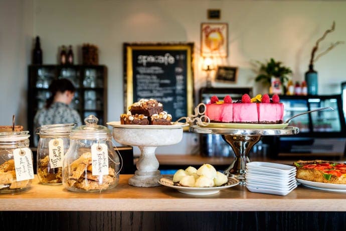 Maten som tillagas är av lokala råvaror där de gästande företagen kan välja om de vill inta alla måltider i restaurangen eller förlägga vissa utomhus i hotellets trädgård eller promenera de 150 meterna till havet för att ha en picknick eller en buffé på stranden.
