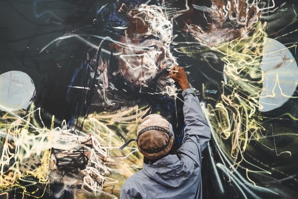 Under sommarpremiären målade artisten och hip-hop dansaren Bust The Drip två stora väggar där han tolkade resande på sitt sätt.