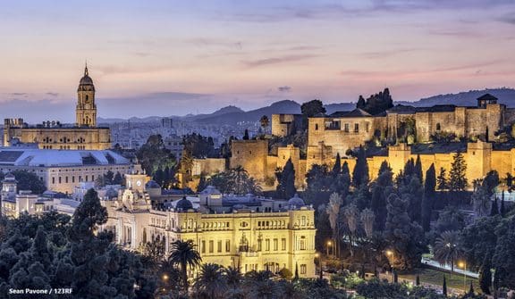 Två byggnader gör sig gällande på kullarna som omger staden. Det moriska palatset La Alcazaba och den lika moriska borgen Castillo de Gibralfaro, som byggdes för att skydda både palatset och staden. Här hittar vi också ruinerna efter en romersk teater, som byggdes för tvåtusen år sedan.