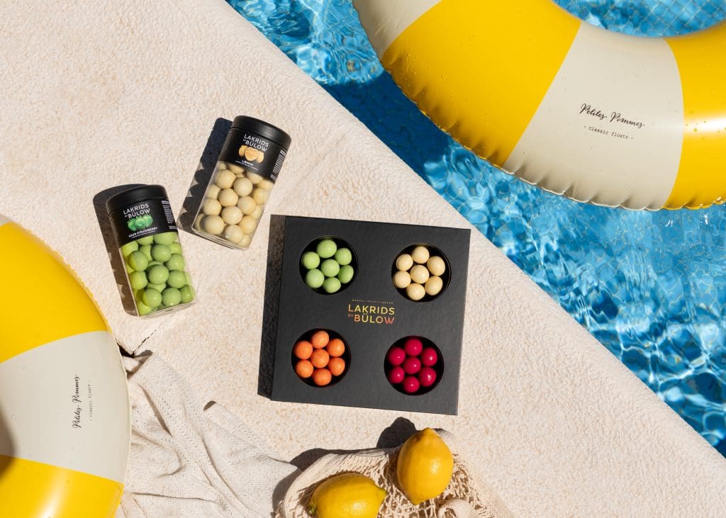 LAKRIDS BY BÜLOW presenterar nu sin sommarkollektion för året, en fruktig smakupplevelse utöver det vanliga. Med en perfekt balans av sött och surt, introduceras två spännande smaker för garanterad sommarkänsla. Kollektionen består av smakerna LÆMON och SOUR STRAWBERRY, tillsammans med SELECTION BOX FRUIT. I smaken LÆMON kombineras saltlakrits med citron. Lakritskärnan är virvlad i vit choklad, grädde och vanilj. En perfekt balans mellan sötma, syrlighet och sälta. Smaken SOUR STRAWBERRY testades för första gången i LAKRIDS BY BÜLOWs smakpanel LAKRIDS LOVERS och toppade snabbt listan över mest populära smakkombinationer. Smaken av nyskördade gröna jordgubbar tillsammans med röd lakrits, täckt av vit choklad och ett krispigt grönt sockerskal skapar en syrlig twist.