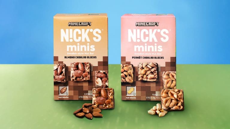 Nu lanserar NICK’S och Minecraft två unika smaker av nötblock inspirerade av ikoniska element från spelet. Resultatet av det goda samarbetet är Almond choklad blocks och Peanöt choklad blocks, chokladtäckta jordnöt- och mandelnötblock. Nötblocken är helt utan tillsatt socker, ämnade för en godare och mer balanserad spelpaus. De kommer i pack om åtta och finns tillgängliga för Minecrafts och NICK’S fans runt om i Europa från och med september.