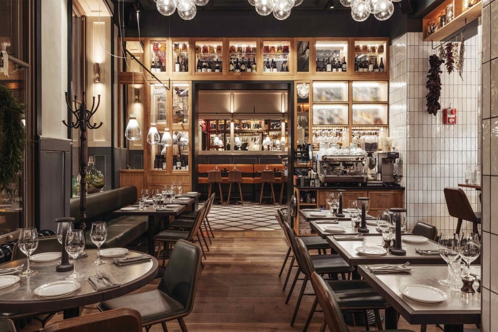 Även vinlistan är väl sammansatt och här återfinns ett stort val av italienska viner med höjdare från bland annat Piemonte samt ett stort urval av viner från övriga världen. Givetvis kan man också komma på en drink i baren där både klassiska cocktails och nya spännande drinkar serveras. Här beställer man med fördel en Gin Sour med olivolja – precis som i Italien.
