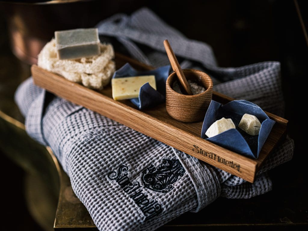 Vi är stolta över att erbjuda våra gäster ett lokaltillverkat spa-kit på våra hotellrum, med vårdande tvålar, hudoljor och lermask, producerade av Malin i Ratan. Den handgjorda tvålen, skapad i den kulturhistoriska byn Ratan vid kusten, cirka 4 mil norr om Umeå, garanterar en genuin och väldoftande upplevelse för alla som använder den. För att förstärka den lokala prägeln serveras alla produkter på en stilren bricka av återbrukat trä, framtagen av den lokala finsnickaren Gabriel på Hometown Wood Design i Bygdeå.