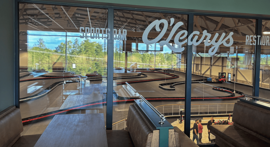I anslutning till gokartbanan finns en entrébyggnad i två plan där O’Learys slår upp portarna till en ny franchiseägd enhet – O’Learys Racehall Tumba. Restaurangen har plats för ca 200 sittande gäster och kommer att erbjuda O’Learys klassiska amerikansk-inspirerade meny i en inbjudande atmosfär. Gästerna har möjlighet att följa spänningen på gokartbanan genom ett stort panoramafönster samt från en balkong som vetter ut mot banan. Utöver gokart kan man se aktuella sportevenemang på TV-skärmarna och njuta av de sköna omgivningarna från en stor utomhusterrass.