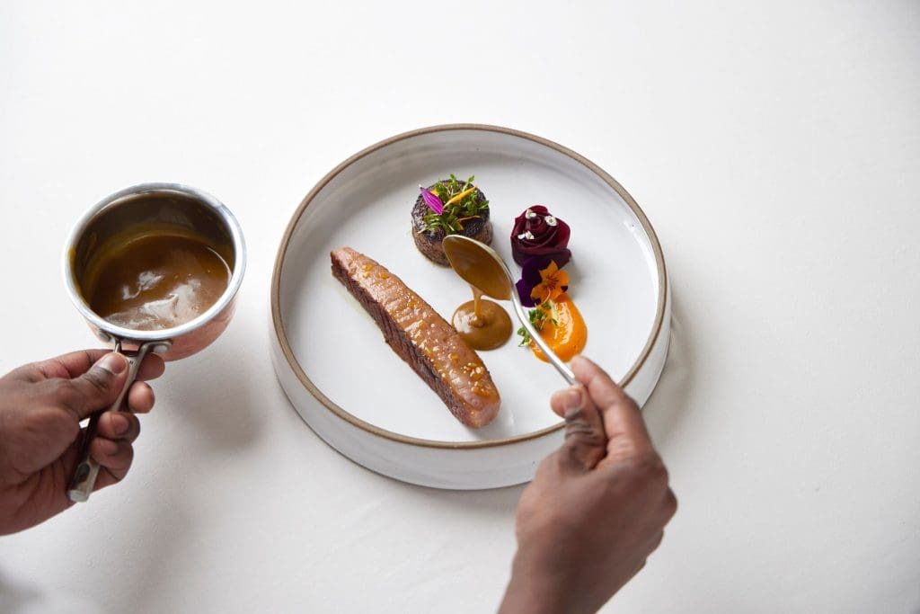 Vår matfilosofi är rotad i det naturliga, det ärliga och det lokala. Råvaror från vårt arktiska område, tolkade med respekt, nyfikenhet och precision. Smaker som speglar platsen, säsongen och det nordiska uttrycket – alltid med gästens upplevelse i fokus. Varje rätt berättar sin historia, formad av naturen, råvaran och det ögonblick den serveras i.