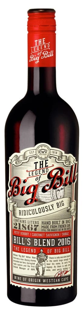 ”Big Bill” är inte vinproducenten utan namnet på ett av de enorma träfaten som används för att framställa vin på Godahoppsudden i Sydafrika. I ett Big Bill-fat som rymmer hela 21 867 liter har detta vin mognat med saftiga röda bär, peppriga kryddor, aromer av mörk choklad och sammetslena tanniner. Ett typiskt rödvin från Sydafrika!