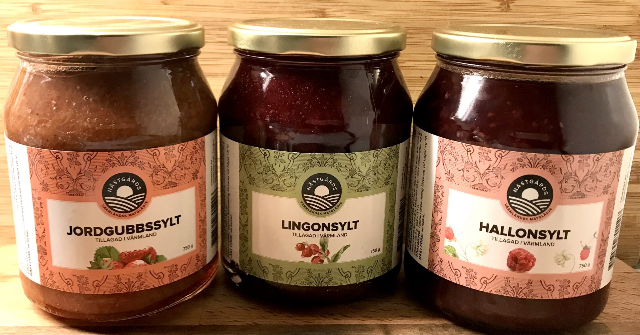 Till ostkaka, ostbrickan och till andra läckerheter på julbordet behövs sylt. Vi har testat en klassisk och god jordgubbssylt från Nästgårds som är oerhört god. Tydlig smak av jordgubbe. Den är söt och har en fantastisk struktur. Vi provar även Lingonsylten. Även den har fin struktur och bra ”tryck” av lingon i sig. En ”lagom” sötma och perfekt syrlighet. Slutligen väljer vi en hallonsylt från Nästgårds som är mycket klassisk i smaken och sommaren påminner oss vid varje sked av sylten – Fast det är jul och vinter! Väldigt god tillsammans med saffranspannkaka på julmorgonen!