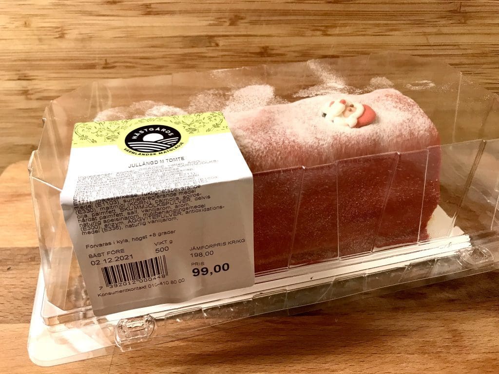 Omdöme: Om du känner att du bara måste ha något söt och gott till julkaffet efter all julmat, vilket vi vet att du såklart vill ha. Då rekommenderar vi Er att handla med dig hem en jullängd. Detta är i stil med den klassiska princesstårtan, fast med röd marsipan. Den är väldig smaskigoch har rikligt med krämig och god fyllning. En tårta som passar in till julkaffet inte bara under julaftonskvällen utan gärna juldagen, annandagen och andra dagar…