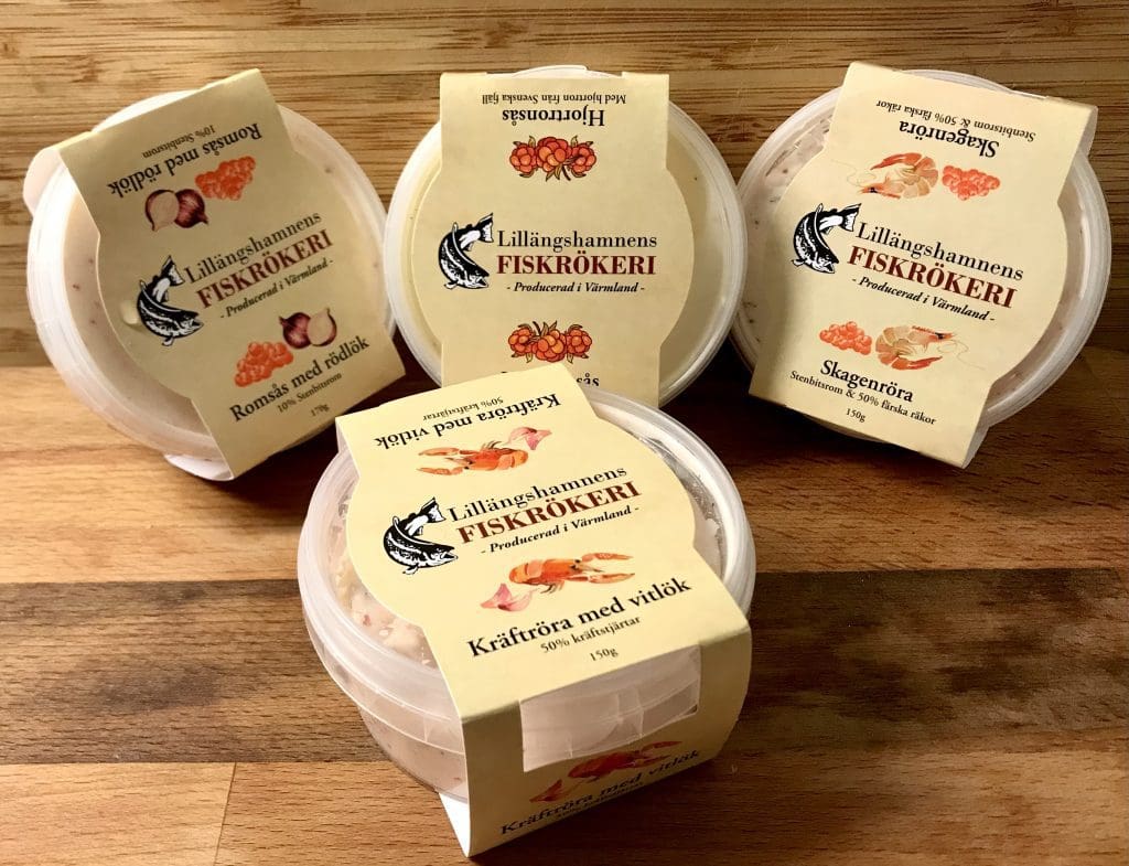 Såserna kommer i följande smaker. Romsås med rödlök, Hjortronsås, Skagenröra samt Kräftröra med vitlök.