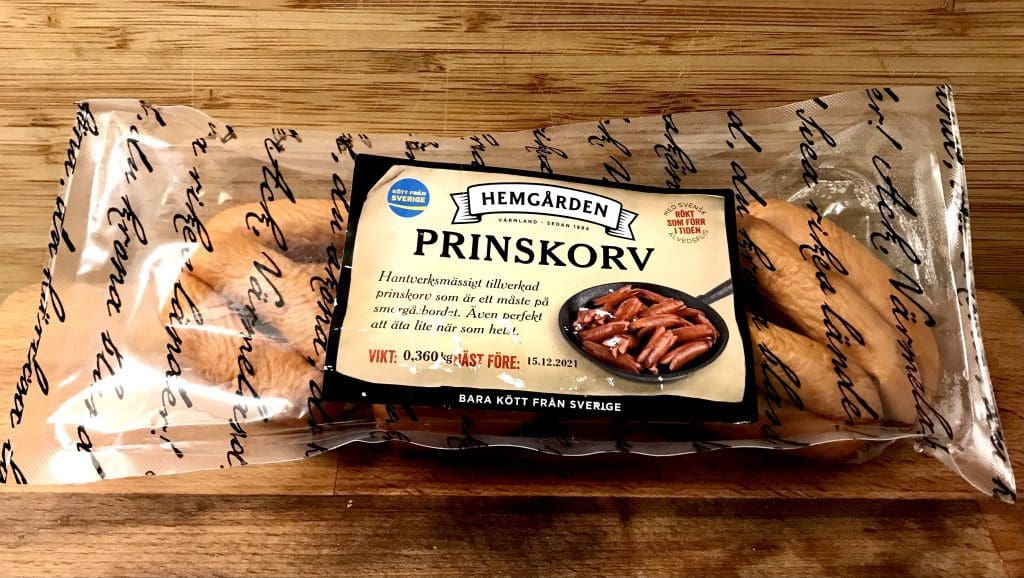 Omdöme: Prinskorv från Hemgården! Jättegod prinskorv med tunt ”skal” Att öva lite tålamot och värma dessa länge på låg värme i stekpannan med mycket smör, är knepet!