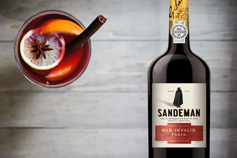 Skala tunna remsor av apelsin och citron skal. Krama ur saften i en stor kastrull och lägg i skalen. Häll sedan i Sandeman Old Invalid Port och resterande ingredienser. Värm försiktigt under 20 minuter. Servera i glas eller kopp tillsammans med en nyskuren apelsin- och citronskiva samt en kanelstång.