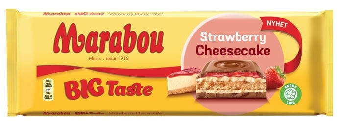 Nu lanserar Marabou en limited edition stor chokladkaka som får en att drömma om sommaren. Med krämig cheescake, krispiga kex och läcker jordgubbspuré toppad med härlig mjölkchoklad blir Marabou Big Taste Strawberry Cheesecake en perfekt njutning till sommarens alla goda stunder.