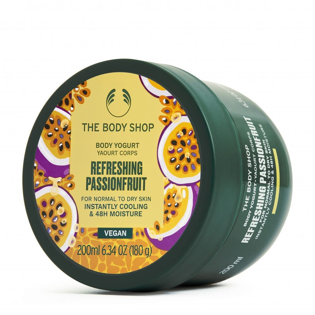 Refreshing Passionfruit Body Yogurt är din kropps nya sommarfavorit! Bestående till 92 procent av ingredienser av naturligt ursprung, bland annat Community Fair Trade-producerad ekologisk mandelmjölk från Spanien, sheasmör från Ghana och naturligt framtagen mentol. Applicera generöst över huden och gör den direkt mjuk, återfuktad och svalkad. Våra Body Yogurts absorberas direkt (också på fuktig hud) så att du kan skutta direkt ut ur duschen via insmörjning, och ut i sommaren. Den har dessutom förpackats i en burk av 100 procent återvunnen plast.