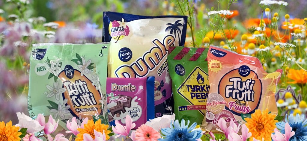 Några av Fazers mest älskade godissorter lanseras nu i nya somriga smakversioner. Perfekt att mixa och matcha efter eget tycke och smak. Nyheterna består bland annat av Tutti Frutti Mixed Fruits i kokos, ananas, hallon och vanilj, Dumle Summer Mix i banan, hallon och vanilj, Karl Fazer Dumle Jordgubb och Tyrkisk Peber i het chili. Godissmakerna finns i butik från och med vecka 19.