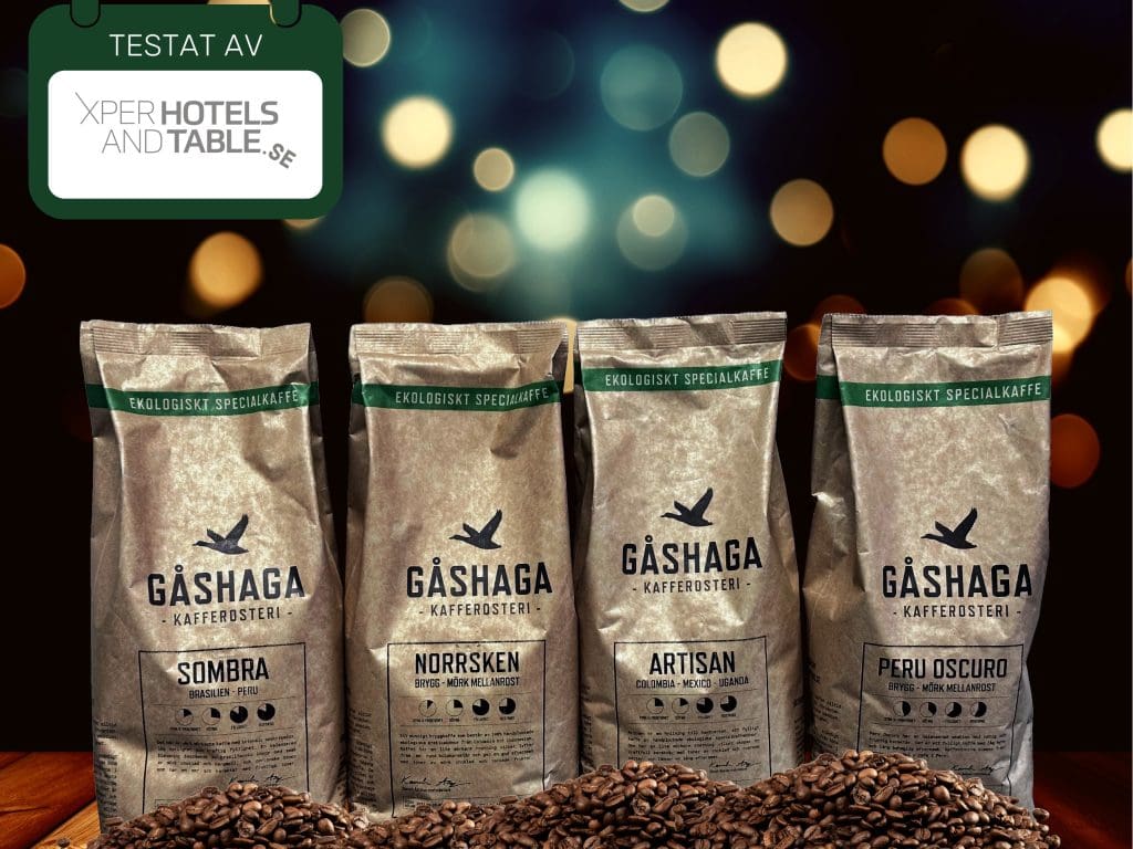Xperhotelsandtable dyker ner i 4 kaffepåsar från Gåshaga kafferosteri och så här tycker vi om Sombra, Norrsken, Artisan och Peru Oscuro.