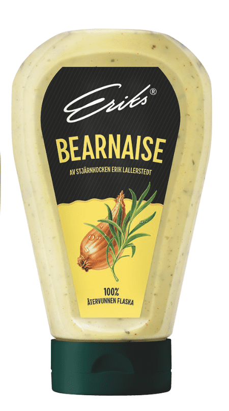 Eriks® flaggskepp Bearnaise kommer att få en ny stor- förpackning. Samma goda bearnaise som finns i 230 ml burkar kommer nu att finnas i storpack i en 400 ml flaska. Rekommenderat konsumentpris 38,90 kr.