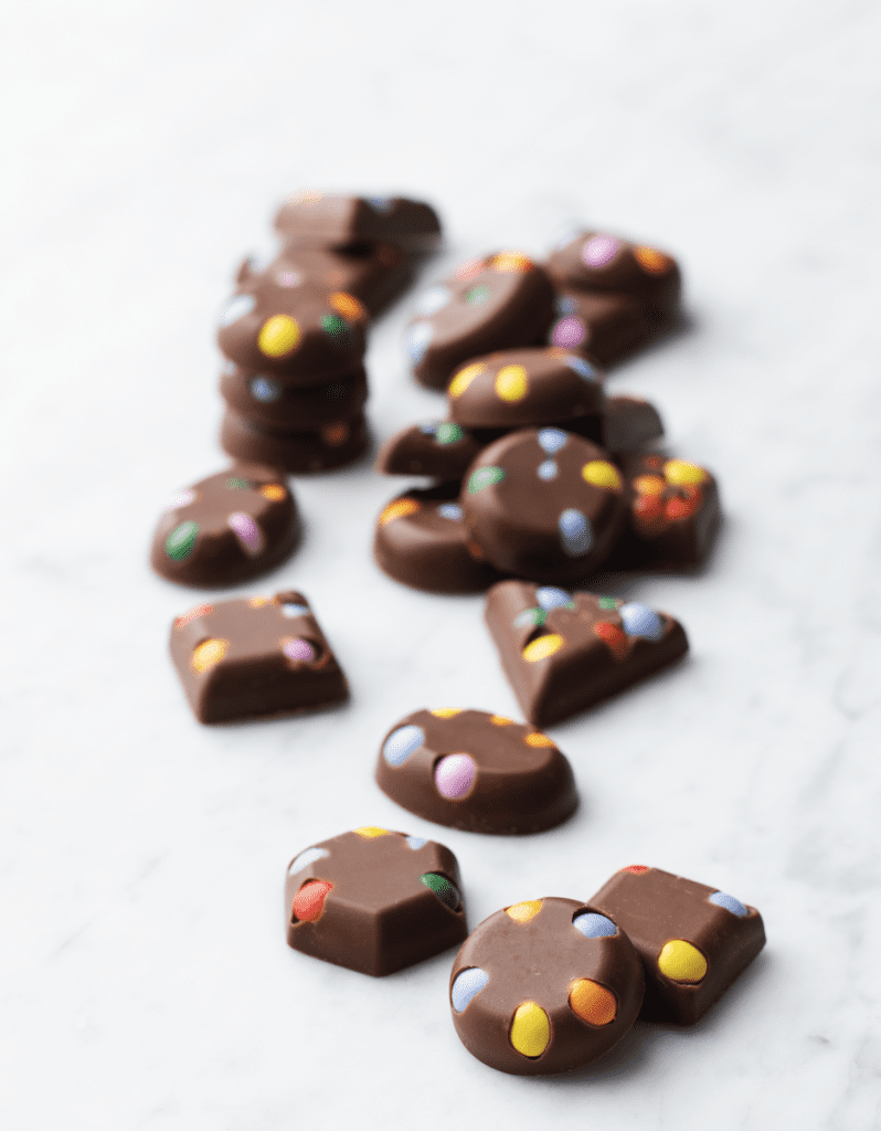 Vi tycker det är fyndigt då man valt att bäddat in chokladlinserna i chokladen. Godisbitarna blir en läckerhet för ögat. Strukturen blir enastående trevlig också på upplevelsen i munnen