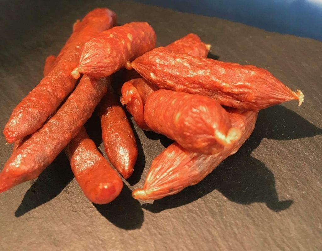 Här är ytterligare en mycket trevlig korv som bjuder på en mycket god och fruktig smak som har en genomgående heta som är välbalanserad och dröjer sig kvar. Denna korv är enkel att tycka om och vi ser absolut att den passar till plockbrickor och olika bjudningar. Prova gärna med ett kryddigt vin med mycket mustighet de tror vi gifter sig fint.