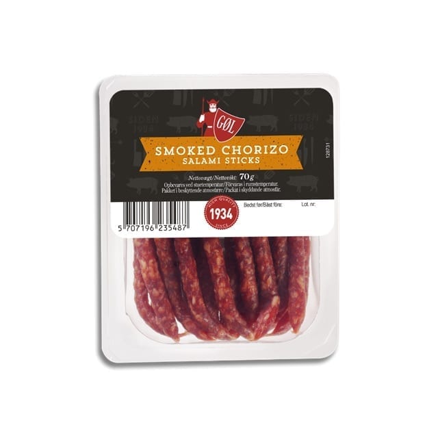 Salami sticks Smoked Chorizo är alltså den ena nykomlingen i GØLs snacksfamilj. De små godbitarna har kryddiga smaker av paprika och extra rökighet. Perfekt att kombinera med andra ölkorvsmaker i GØL:s sortiment som vitlök, classic och picante på tapasbrickan.