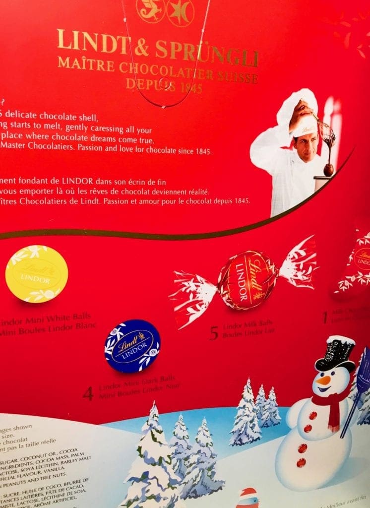 Vi vill ju inte förstöra och berätta om innehållet för Er och ge en spoiler-art. Men vi kan säga såhär om de denna trevliga adventskalender att den bjuder på de finaste chokladbitarna från Lindts choklad och överraskar i varje lucka. Här en verkligen en adventskalender för dig som uppskattar fina goda praliner och som älskar kombinationen i december av morgonkaffe och en fin bit choklad innan dagen drar igång.