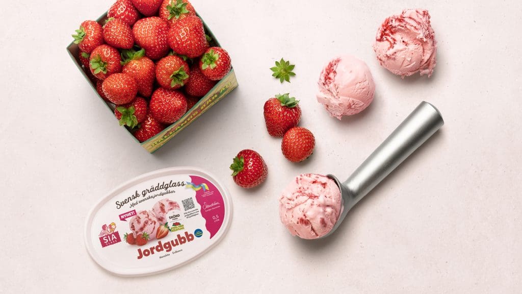 – Ambitionen var att vår nya jordgubbsglass skulle ha en genuin smak av vårt geografiska ursprung – och det här är vår själ uttryckt i en riktigt klassisk glassmak, säger Dan Bengtsson på SIA Glass.