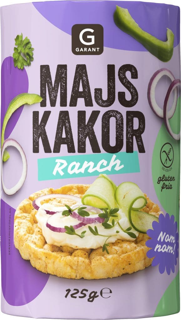 Glutenfria majskakor märkta med det överkorsade axet från Svenska celiakiförbundet. Märkningen intygar att en produkt med säkerhet är glutenfri. Toppa med färskost och grönsaker eller lemoncurd och söta bär för ett gott mellanmål. Garants majskakor kommer i 2 nya smaker;