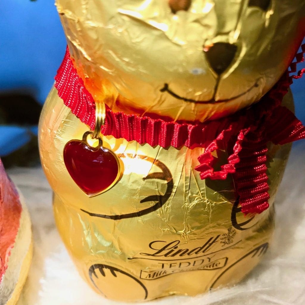 Till att börja med är denna Teddy så fin att man inte vill bryta förpackningen. Men när man väl gör de så möts man av en fantastisk slät och ren och fin choklad som är enastående i kvalite. Choklad är perfekt i tjocklek och de går alldeles utmärkt att bryta små chokladbitar och njuta. Vi tyckte även att det var extra kul eftersom Tebbyn hade ett lite hjärta runt sin hals. Vilket barnen i gruppen snabbt kom på att man kan sätta i armbandet eller sitt eget halsband. Smart och snyggt. Vi gillar Tebby och tror att denna chokladbjörn passar ypperligt att ge värdinna på festen i nyår som att ge bort till den där personen som säger ” Jag önskar mig inget i julklapp” …Vårt tips 🙂