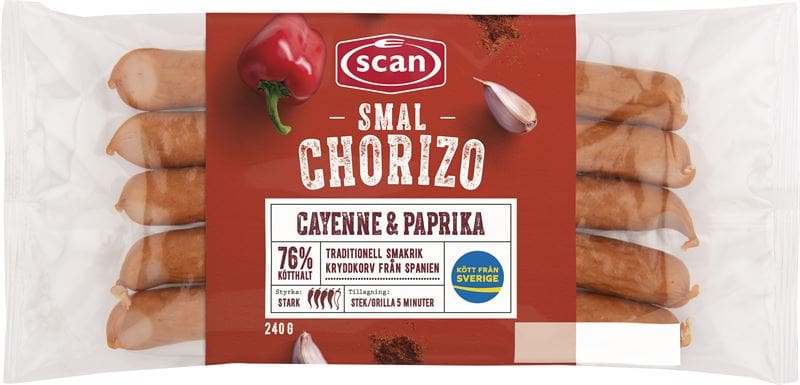 En ny smalare variant av vår uppskattade Chorizo (Sveriges mest sålda kryddkorv) med samma goda smak av cayenne och paprika som originalet.