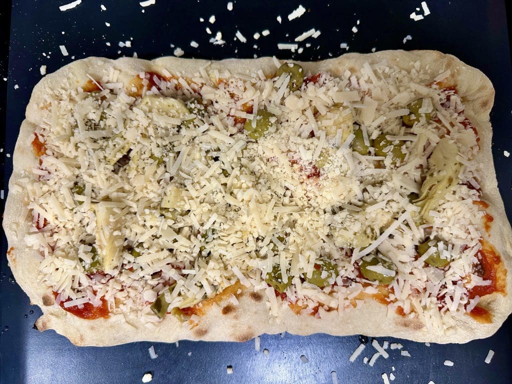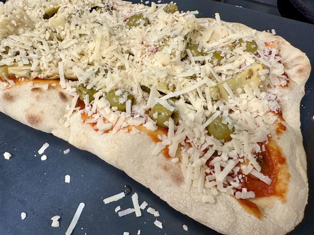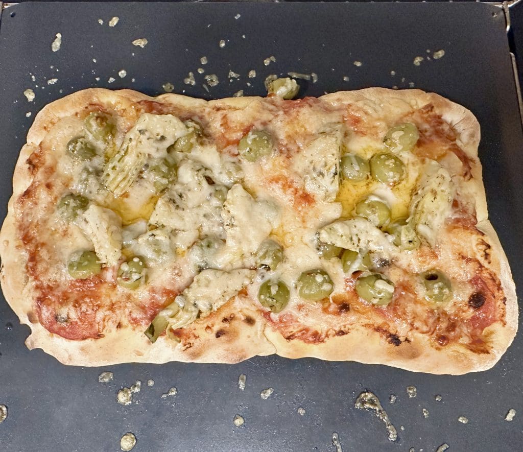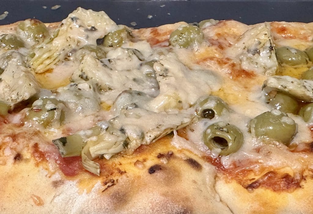 Den smälter varsamt och ger en fantastisk textur och smak som verkligen tar pizzan till nästa nivå. Detta är en riktig höjdare som ni bara måste prova! Och nu till en hemlighet som vi gärna delar med oss av: kronärtskocka. Att addera kronärtskocka på pizzan är något alldeles speciellt. Om du inte har testat detta tidigare är det hög tid att göra det nu. Smaken blir helt magisk, med en subtil jordighet och en lätt syrlighet som kompletterar de andra ingredienserna perfekt. Självklart får vi inte glömma oliverna. För sältans skull är det ett absolut måste.