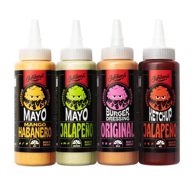 Oavsett om du är självutnämnd pitmaster eller en rookie vid grillen vill Johnny’s vara din buddy. Grunden till Johnny’s Barbeque Buddies ligger i det svenska folkets stora intresse för grillning, i kombination med att fler och fler blir hooked på heta chilivarianter och starka såser.