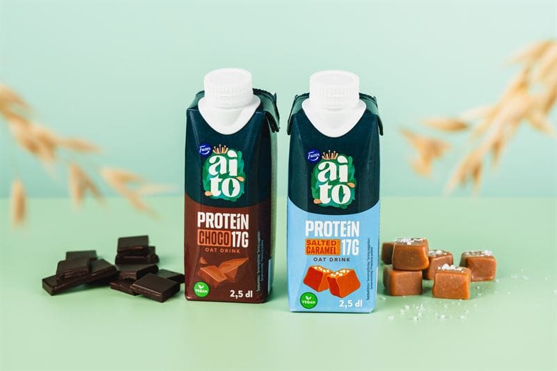 Fazer Aito tar nu klivet in i en ny kategori och lanserar sina första växtbaserade proteindrycker i on-the-go-format. De två nyheterna, Aito Protein Choco och Aito Protein Salted Caramel, kombinerar högt proteininnehåll med god smak i ett praktiskt 250 ml-format för en aktiv vardag.