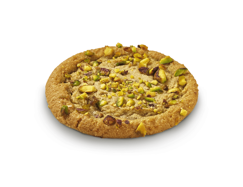 Om du funderar på vad du ska beställa till kaffet, så vill vi varmt rekommendera att du tar en extra titt på Cookie Pistage. Denna kaka är inte bara en kaka, det är en riktigt generös och lyxig upplevelse för smaklökarna. Föreställ dig en saftig botten rik på ljuvlig pistagepasta, vars milda och nötiga aromer dansar på tungan. Tänk dig sedan en yta täckt av en generös mängd hackade pistagenötter, som bidrar med en härlig crunch och en extra dimension av pistagesmak.