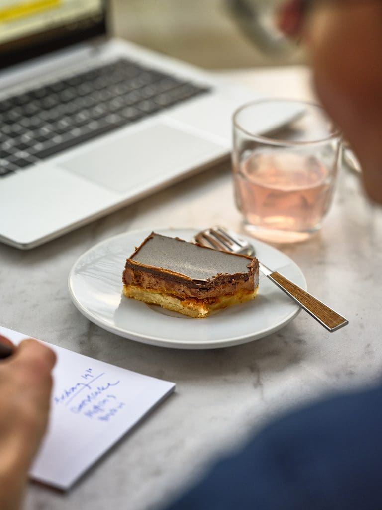 ”Föreställ dig detta: Denna eleganta lilla bakelse, vackert presenterad, åtföljd av en generös klick vispad grädde – gärna med en antydan av vanilj – och kanske, för den fulländade upplevelsen, ett glas fin konjak vid sidan om.