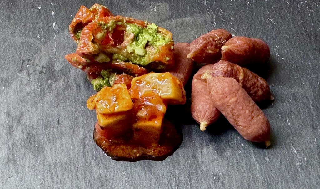 En kombo som ger smaklökarna en riktig match. Pomamore (små söta, smakrika och lättrostade medelhavstomater i en marinad med basilika och flagad Parmesan) Cabanossi (ölkorv med smak av vitlök) och Aioli. 165 g.