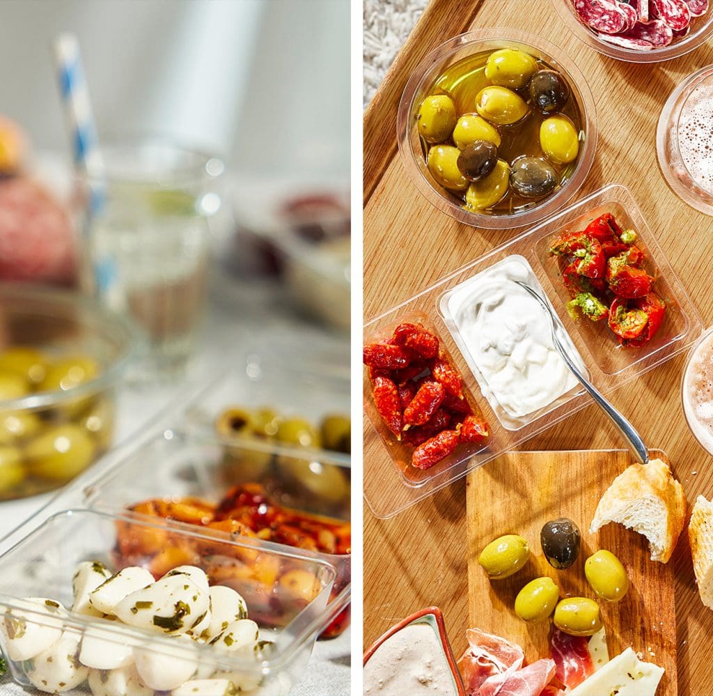 Design: Toppen att man valt förpackningar som bjuder in och visar innehållet så man verkligen ser vad man köper samt mängde av de olika tapas-varianterna i brickan.