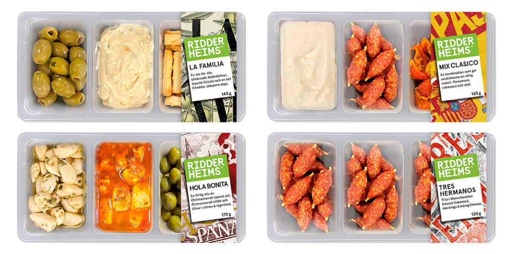 Ridderheims sortiment omfamnar smaker och ingredienser från hela världen, som gjorda för att enkelt mixa och matcha efter vad du gillar och tillfälle. De nya, färdiga plockbrickorna gör det lätt när du inte riktigt vet vad du är sugen på, eller kanske ska ta ditt första steg in i tapasvärlden.