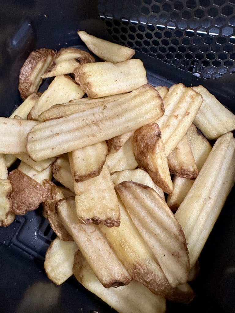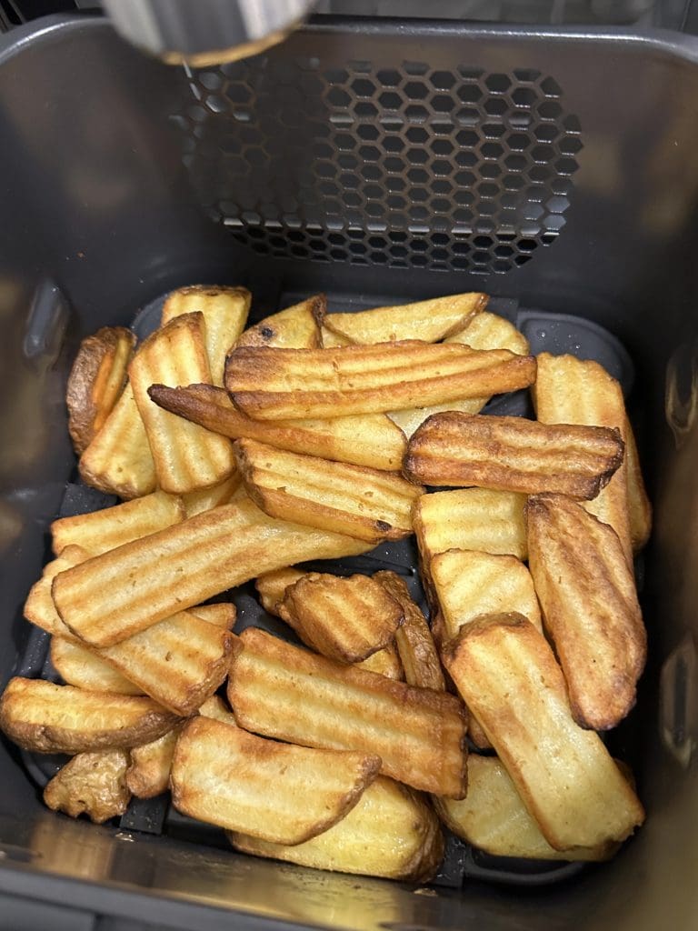 Den heta luften cirkulerade runt pommesen och skapade en fantastisk krispighet utanpå, samtidigt som insidan förblev mjuk och fluffig. Vi rekommenderar verkligen att använda en Air Fryer för att uppnå den optimala texturen och smaken.