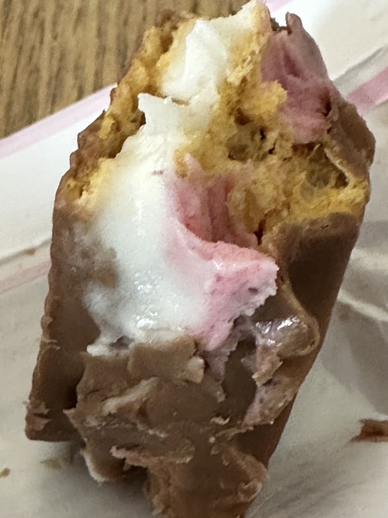 ”Innan vi fördjupar oss i de praktiska fördelarna med produkten, måste vi hylla den rena smakupplevelsen – en ljuvlig resa för smaklökarna. Föreställ dig detta: Ett första möte med en massivt krispig våffla, som ger efter med ett tillfredsställande knäpp. Innanför detta gyllene skal döljer sig en fyllning som är både lätt och luftig, en perfekt balans mellan söt vanilj och den friska, lätt syrliga smaken av hallon. Som kronan på verket, ett överdrag av mältat råg – en subtil men avgörande detalj som adderar en extra dimension av komplexitet och en behaglig, nötig ton.